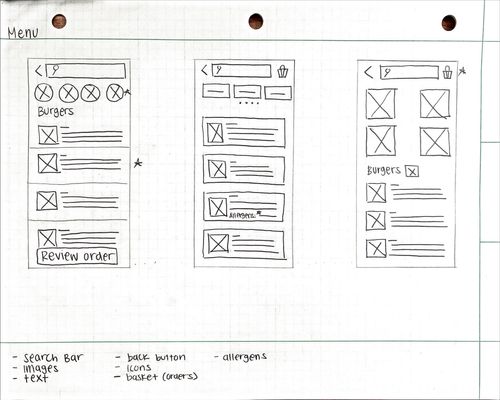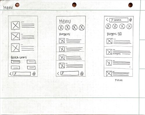 I sketched 5 potential wireframes, chose the best features from each sketch, combined them in a final sketch, and digitized it. I then repeated this process for each screen.